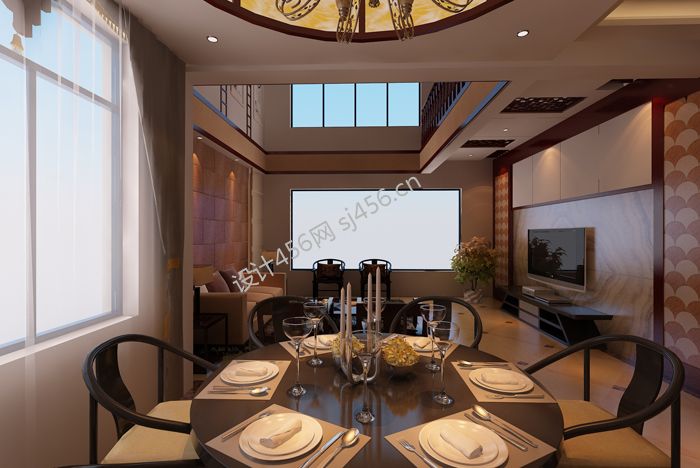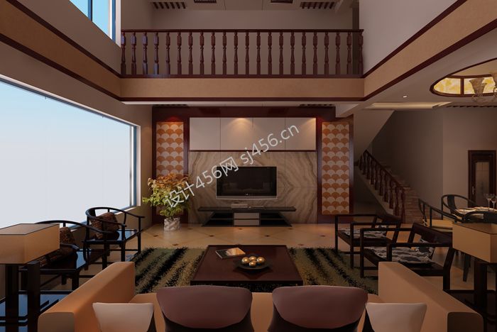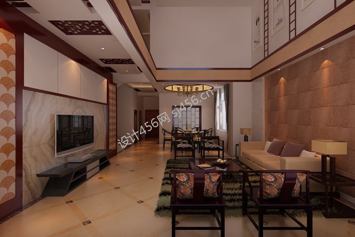 现代中式别墅客厅沙发背景墙设计装修效果图