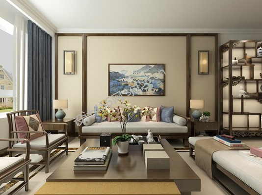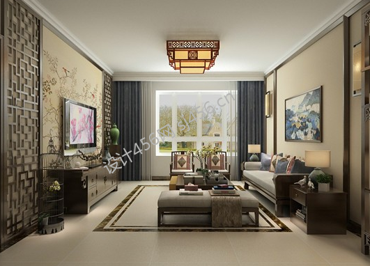 118平中式风格客厅装修实景图