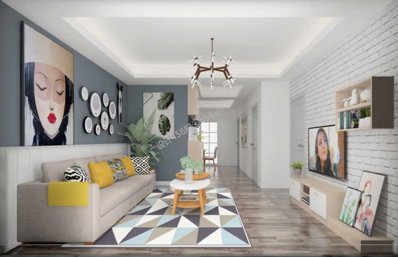 二居88平简约风格客厅设计图