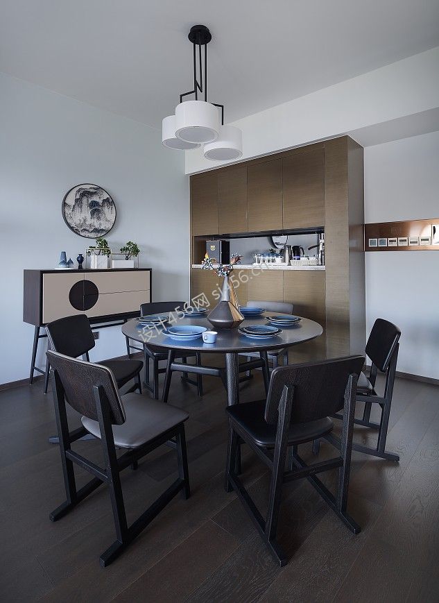 新中式风格120平米餐厅吊灯装饰装修效果图片