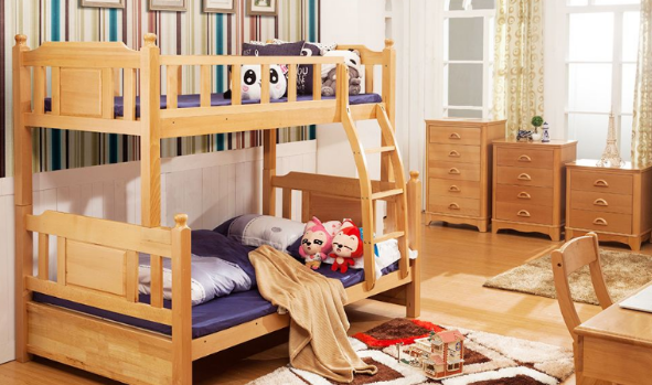 其次,双层床的材料也很有讲究。材料为木材的双层床应留意有无贯通的裂缝,该木材是否容易腐朽或被虫蛀,是否容易掉落木屑,还有支撑层(包括支架、挡板、床板)密度、厚度、不可塑性是否达标等。