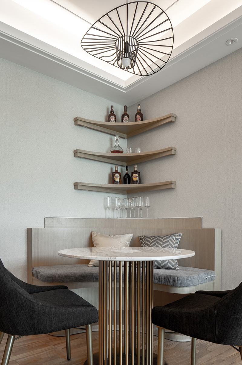 家里空间小,对比下餐椅确实早该淘汰了,反而现流行靠墙打卡座更实用,!而且除了抽拉更便利之外,收纳方面就更不用说了,不仅坐垫下面可以改成抽屉,就连背后的靠背也不例外,直接做宽15公分不贴墙,存放东西的地方又能多一倍,小空间又省1㎡。
