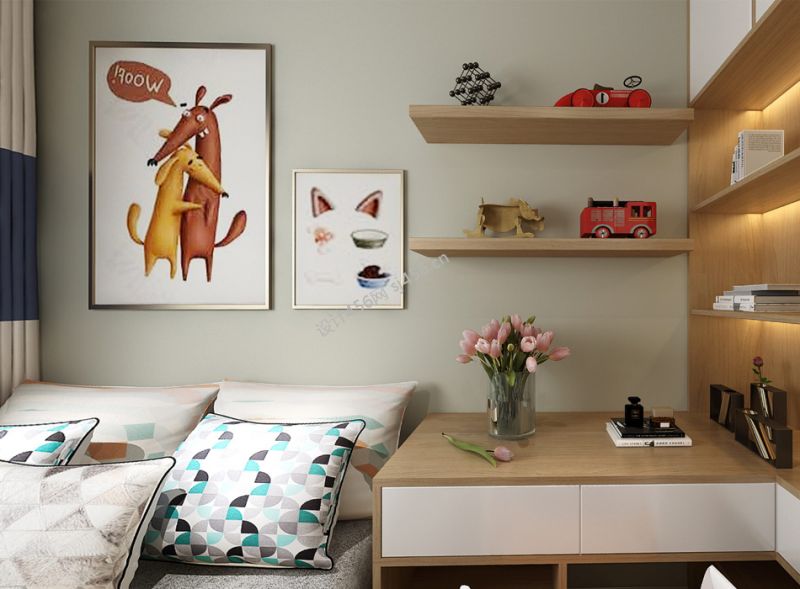 设计理念: 案例背景本案位于南岸区保利观塘,是成熟小区高层中的大户型。业主是一对年轻夫妇,有外公、父母同住、以及未来小宝宝的房间,在风格上选择了北欧风格,营造出一个清新、自然、平衡舒适的家。色彩分析米白色是介乎于驼色和白色之间的一种都市色彩,它具有驼色的优雅大气,又多了几分清爽宜人的气息,与白色相比,米色多了几分暖意与典雅,不事夸张。天青色:粉粉嫩嫩的青,是一种非常难于制作的颜色,传说只有当瓷器出窑的一瞬间,正碰上阴雨绵绵的湿润天气,那瓷器上淡淡的雨雾般颜色才会渐渐晕开,成为一种梦幻般的色彩。缃色,中国传统色彩名词,是浅黄色丝绸的颜色。在家居里面,常常用作点缀之用。客餐厅和阳台连通增强了空间感及通透性,整体色调以浅色为主、局部深色木色为辅、黄色作以点缀,打造了一个温馨舒适的北欧小家。木质的餐桌,搭配浅绿色的餐桌椅,别致的花艺,北欧绿色的装饰画,自然又清新。餐边柜的设计增加了储物功能,又不失美观度。 案例背景本案位于南岸区保利观塘,是成熟小区高层中的大户型。业主是一对年轻夫妇,有外公、父母同住、以及未来小宝宝的房间,在风格上选择了北欧风格,营造出一个清新、自然、平衡舒适的家。色彩分析米白色是介乎于驼色和白色之间的一种都市色彩,它具有驼色的优雅大气,又多了几分清爽宜人的气息,与白色相比,米色多了几分暖意与典雅,不事夸张。天青色:粉粉嫩嫩的青,是一种非常难于制作的颜色,传说只有当瓷器出窑的一瞬间,正碰上阴雨绵绵的湿润天气,那瓷器上淡淡的雨雾般颜色才会渐渐晕开,成为一种梦幻般的色彩。缃色,中国传统色彩名词,是浅黄色丝绸的颜色。在家居里面,常常用作点缀之用。客餐厅和阳台连通增强了空间感及通透性,整体色调以浅色为主、局部深色木色为辅、黄色作以点缀,打造了一个温馨舒适的北欧小家。木质的餐桌,搭配浅绿色的餐桌椅,别致的花艺,北欧绿色的装饰画,自然又清新。餐边柜的设计增加了储物功能,又不失美观度。