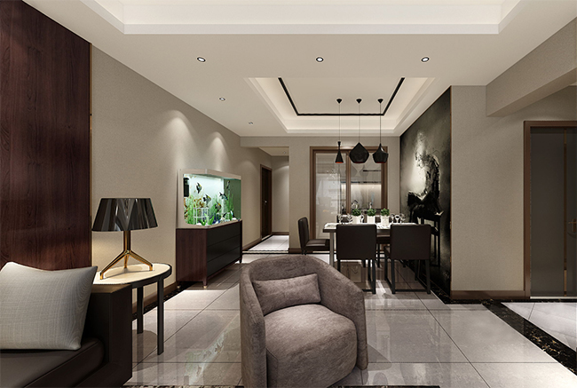 每个功能性分区都有其主要功能,重庆装修设计表示可以利用独特的装修手法来区分。主要在表现在吊顶上,比如在整个大客厅中做两个局部吊顶,在会客厅上方设计一个吊顶,另外一个在餐厅上方,这样就形成了两个区域。