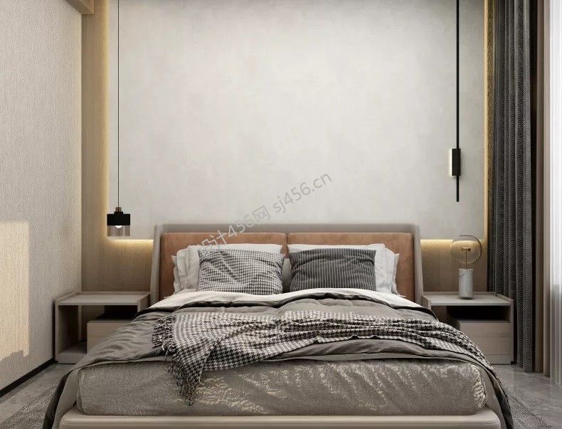 119平米现代简约三室两厅卧室背景墙装修效果图