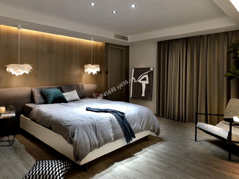 现代风格280平米别墅卧室床头灯设计装修效果图