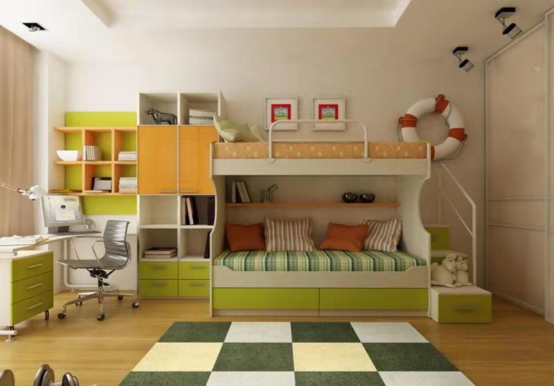 此外,业主还可以定制一些带收纳功能的家具。如将孩子的活动区设计成榻榻米,抬高的地台可以供充足的收纳空间供孩子收纳玩具、书籍。儿童床下方有很大的空间可以储存,如果本身就选的是带收纳的床体,那自然蕞好不过,如果的床本身是没有收纳柜的,业主又担心把东西放床下不好拿会积灰,可以添加一款带轮子的收纳柜,把物品隐藏在床底下。带收纳的凳子既不占地方,里面又能收纳孩子的绘本和玩具,如果怕不方便搬,只要在底部装上滑轮就可以很好解决这个问题。