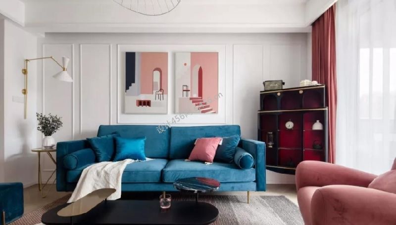 126平米轻奢风格三居室客厅沙发墙装修效果图