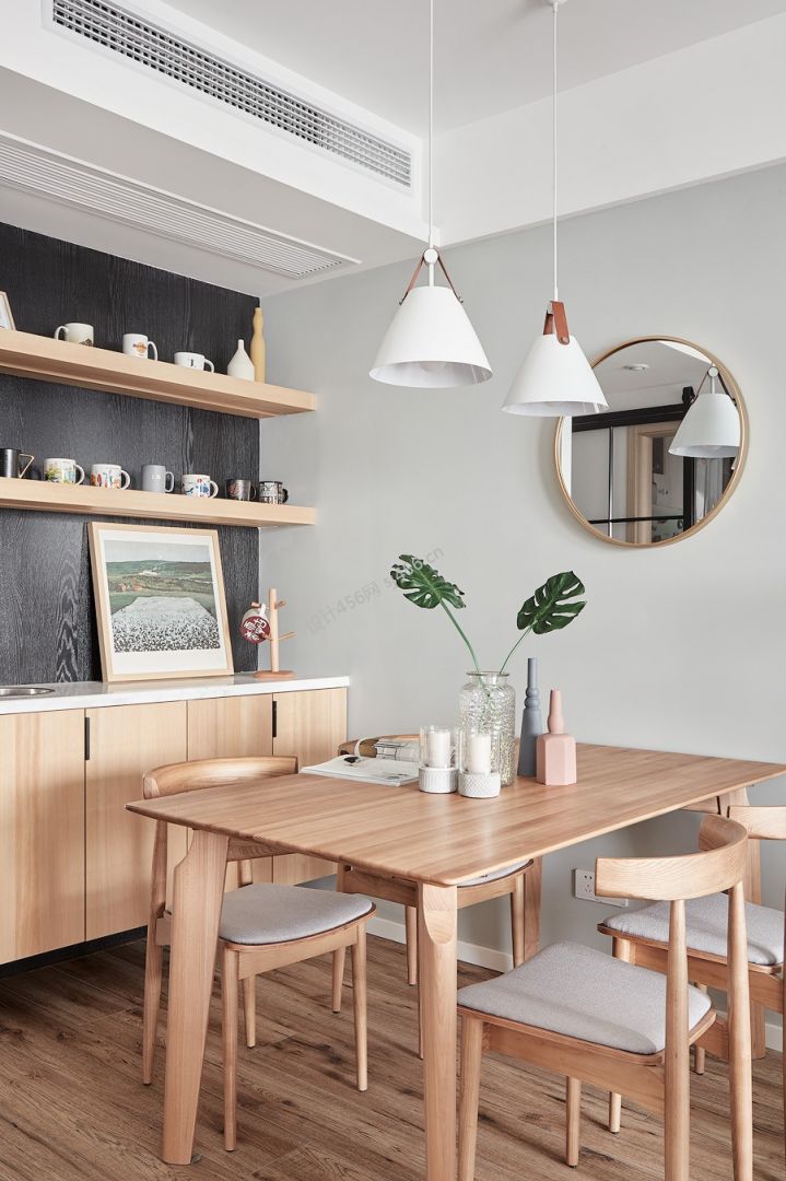 103㎡北欧简约风三居室餐厅吊顶装修效果图