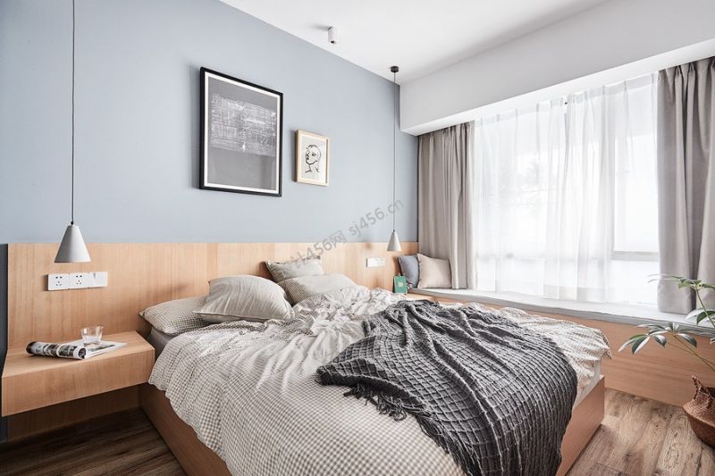 103㎡北欧简约风三居室卧室背景墙装修效果图