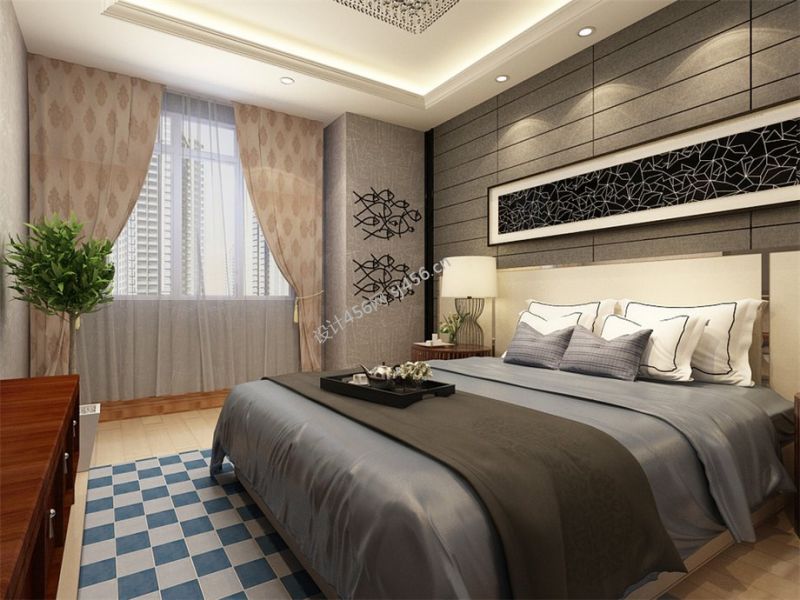 112平三居混搭风格卧室装修效果图
