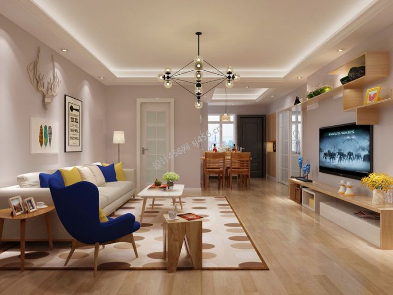 三居105平现代简约风格客厅设计图
