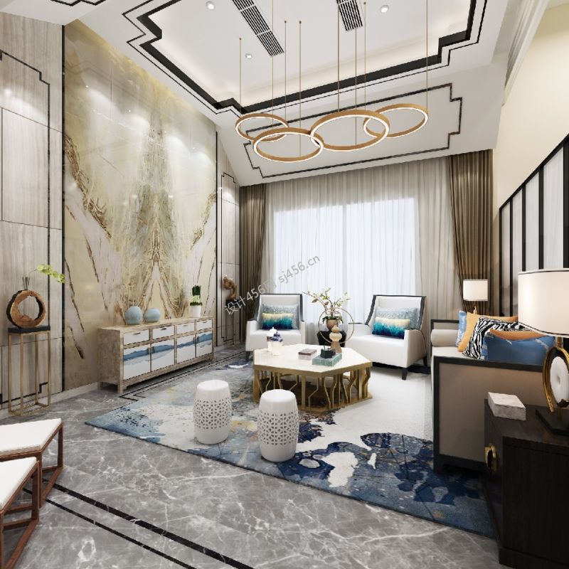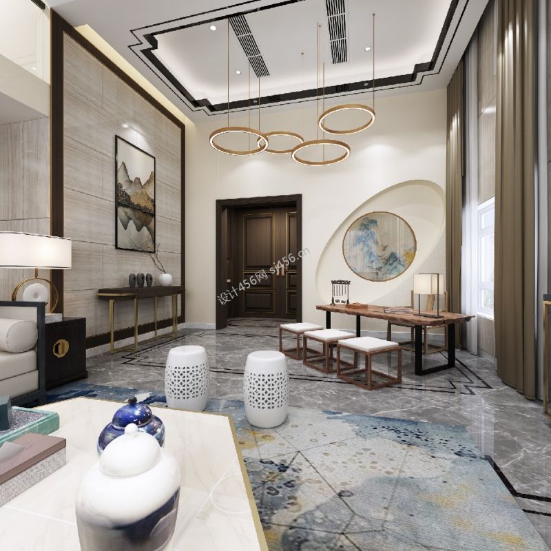 145㎡新中式风四居室餐厅吊顶装修效果图