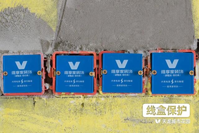 前期开凿安装完成的线盒,需要加盖塑料保护壳进行遮挡。线盒保护主要是为了避免后期进行墙面施工时泥沙残渣掉入线槽盒中,留下安全隐患,同时也方便后期安装开关面板更加顺畅。
