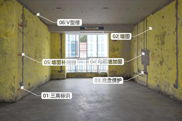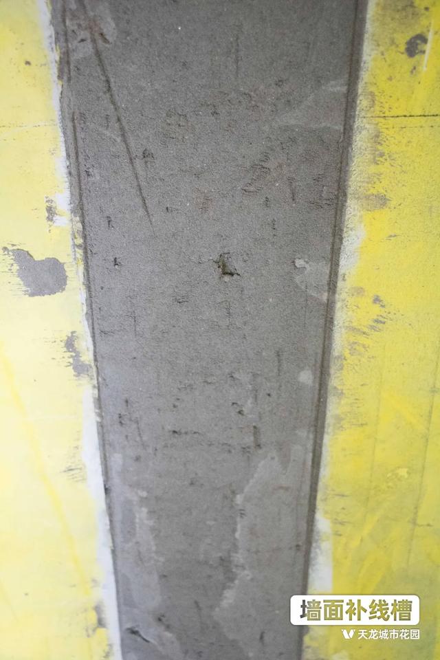 水电阶段开槽的线管、水管要进行敷埋,墙面的线槽进行补缝处理时,两侧应该各留一条凹槽,避免后期因为热胀冷缩导致墙面开裂。
