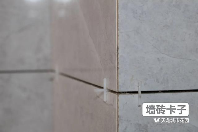 铺贴墙砖时,应在每两块墙砖之间塞入专用的十字卡子,从而确保墙砖铺贴的缝隙一致,保证整个贴砖效果的整齐和美观。