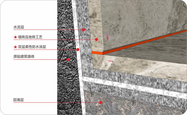 (墙砖压地砖剖面示意图)