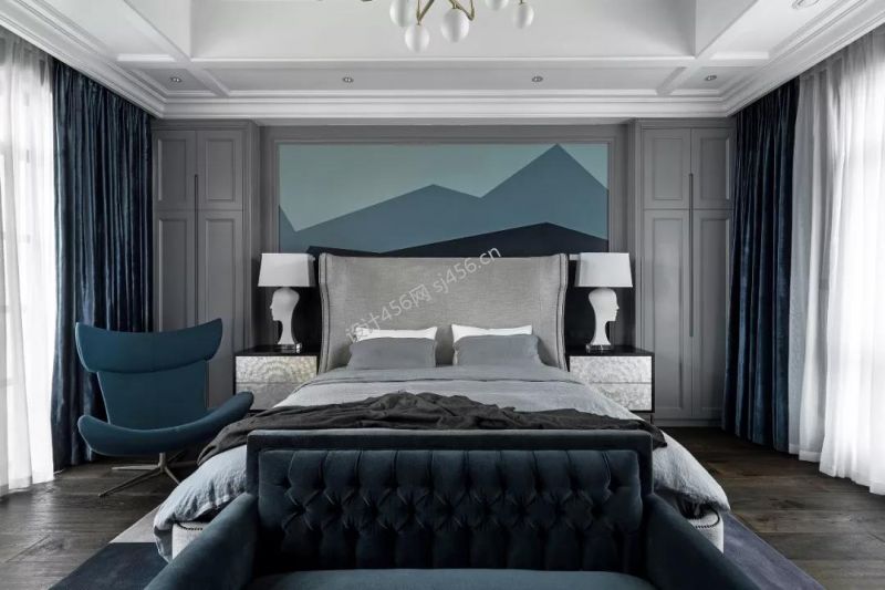 239平米现代轻奢别墅卧室背景墙装修效果图