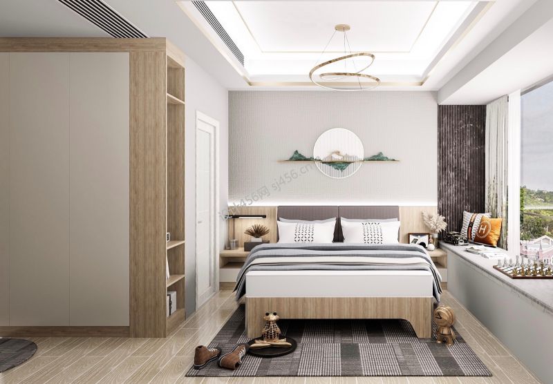 246平米现代轻奢四居室卧室背景墙装修效果图