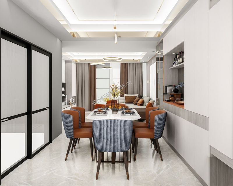 246平米现代轻奢四居室餐厅吊顶装修效果图