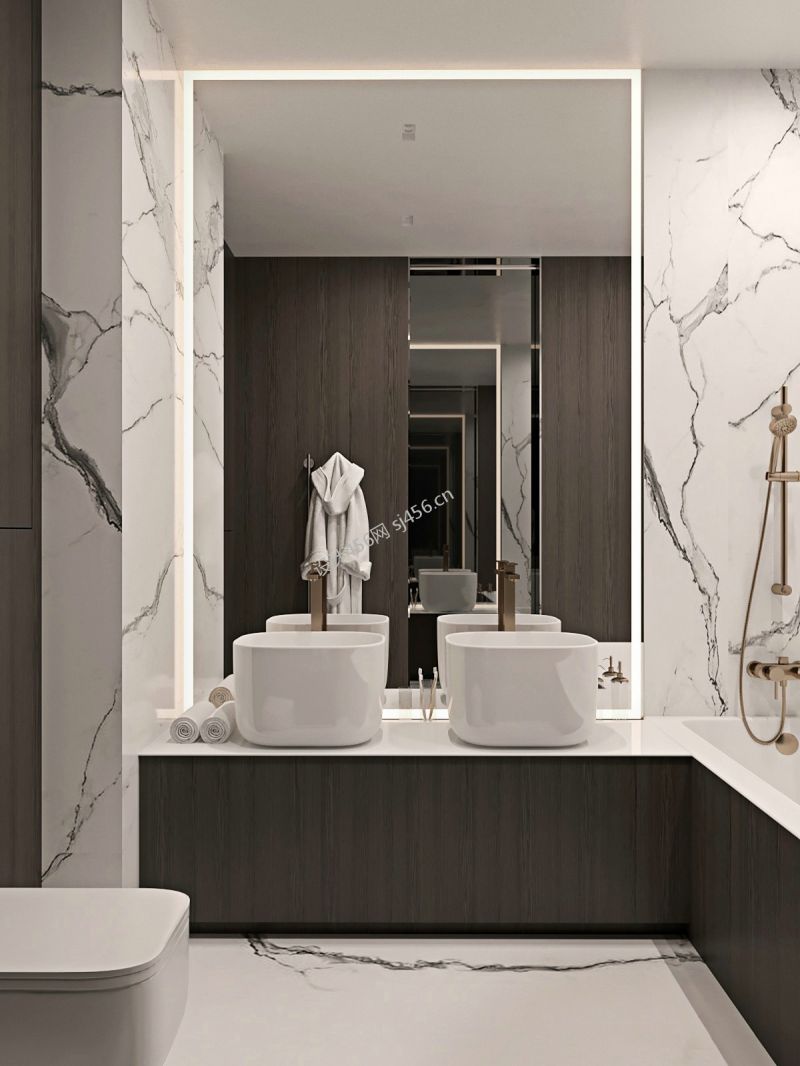 103平米轻奢风格三居室卫生间洗手盆设计效果图