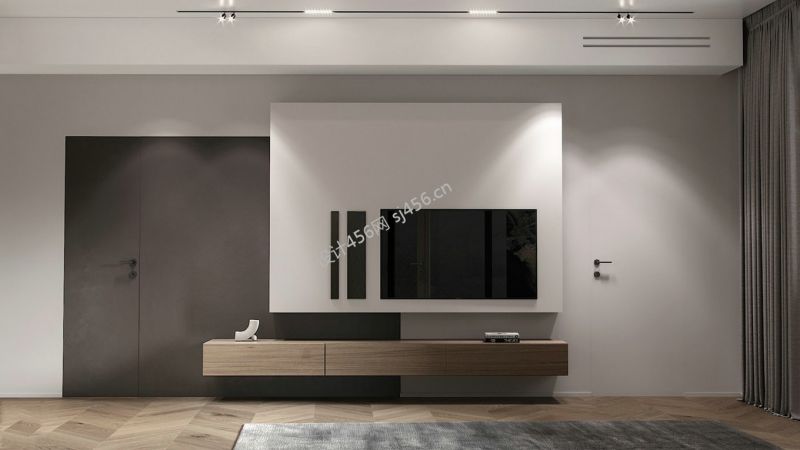 100㎡高级灰极简风三居室客厅电视墙设计效果图