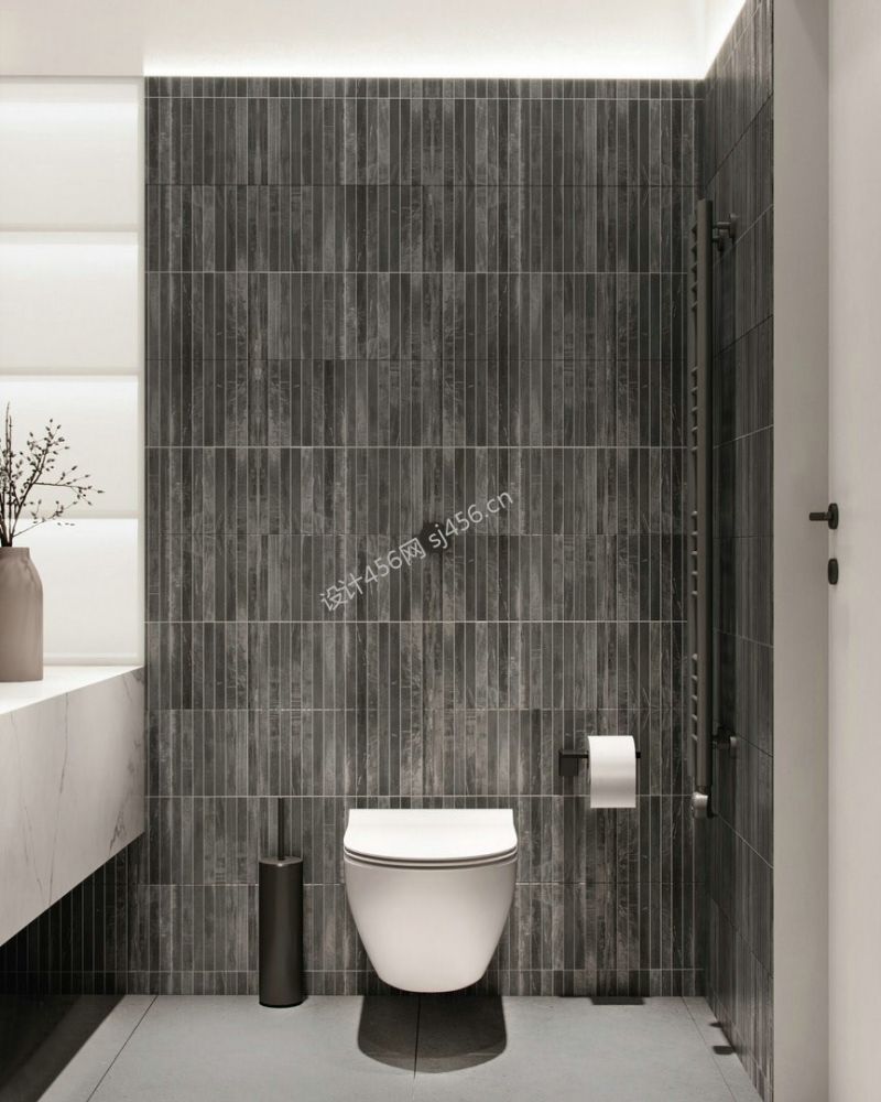 100㎡高级灰极简风三居室卫生间马桶设计效果图