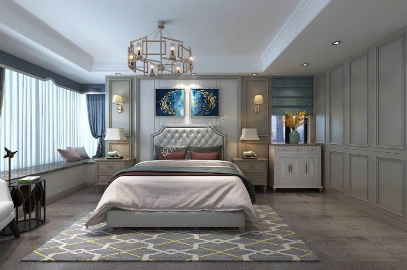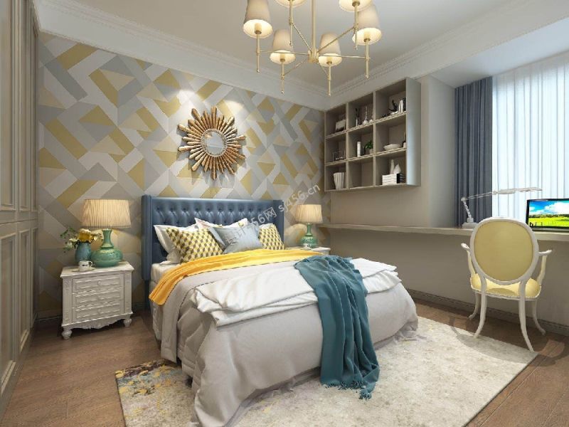 欧式风三居室卧室床头背景墙壁纸装修效果图