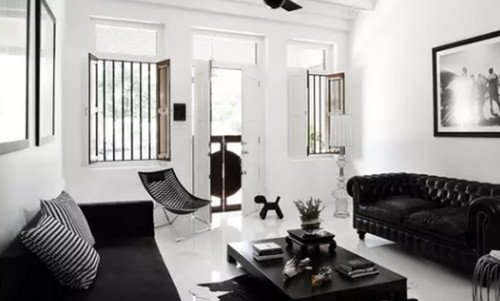 图中的别墅装修采用黑色和白色经典搭配,营造出一种优雅个性的氛围。黑色沙发在客厅中显得非常霸气,与木地板颜色相辅相成。客厅的水晶吊灯更是显得无可挑剔,体现出一种简约时尚的感觉,客厅中放一把小提琴,让空间多了几分艺术感。