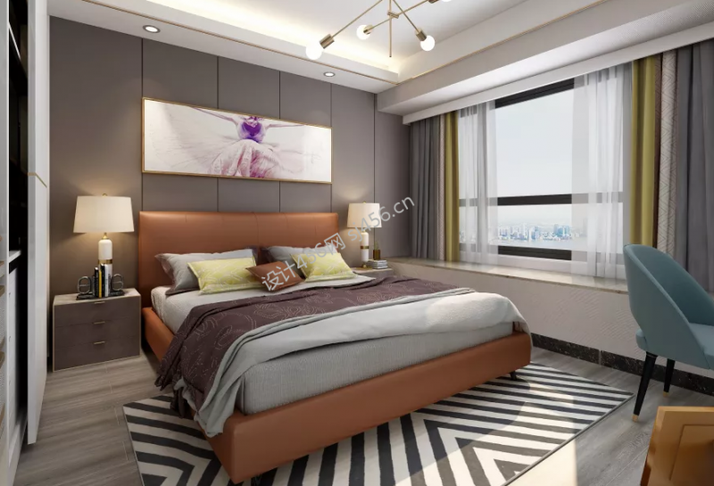 现代风格二居室卧室床头背景墙造型设计装修效果图