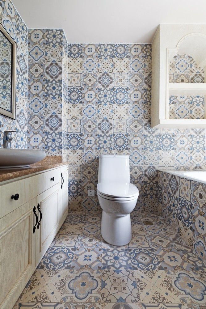 139㎡欧式典雅三室两厅卫生间瓷砖装修图片