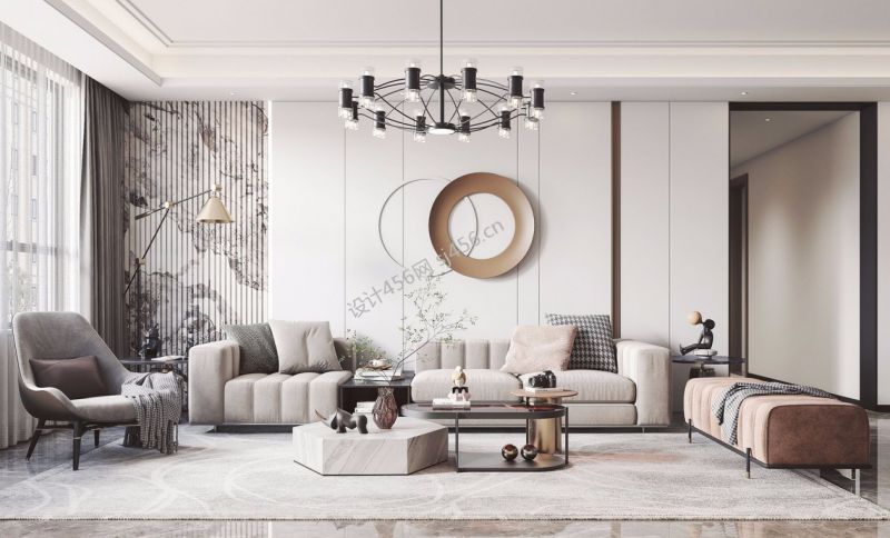 141㎡现代轻奢风四居室客厅沙发墙装修效果图