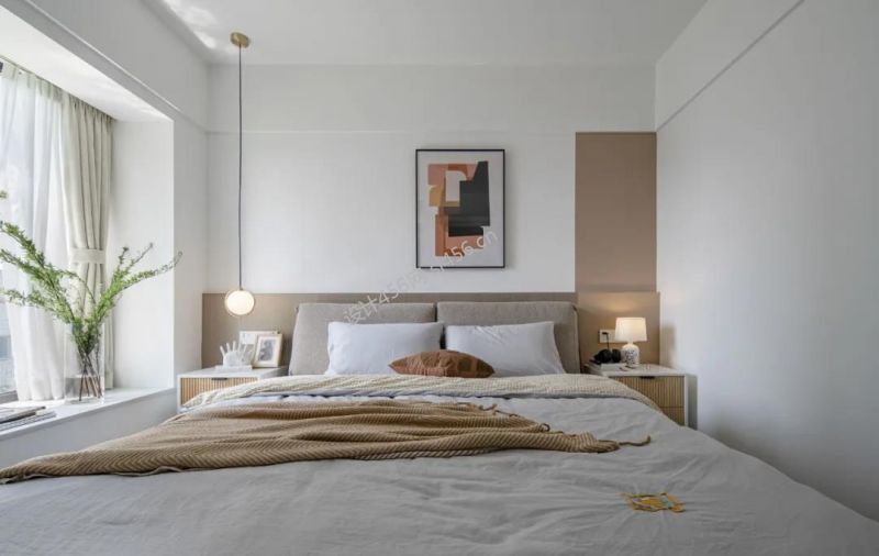 99平米北欧风格三居室卧室背景墙装修效果图