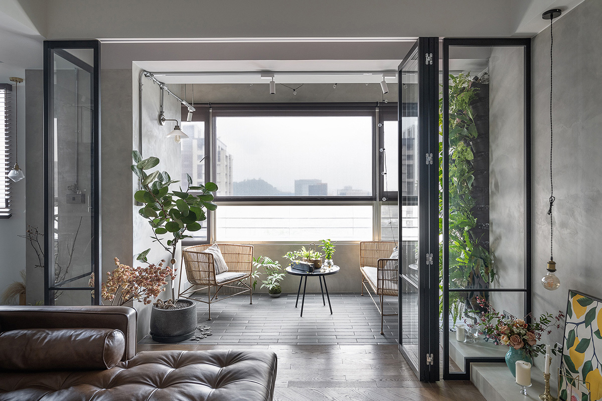 阳台采用玻璃折叠门设计,给予了更宽松的空间感。折叠门开合之间,对于客厅采光效果影响并不是很大。