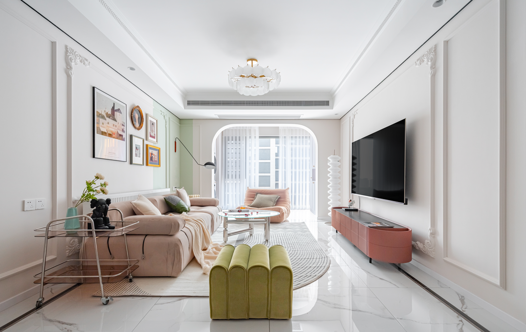 1. 背景墙作为客厅装饰中的主体,在色彩搭配上,应结合整体空间色调的和谐统一。如果背景墙和空间色彩不一致,很容易造成视觉上的落差感,造成情感的影响,其中白色、浅黄色等这类色系,在空间使用较为频繁。