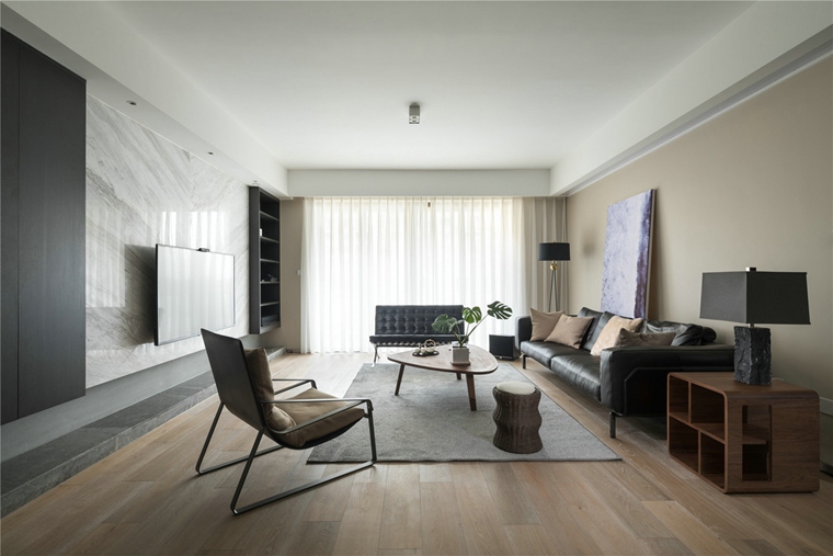 3. 现代装修中,讲究质感的突出,其中白色是风格最常用的色彩,不仅增加室内光亮度,而且有利于室外阳光的撒入。因此很多电视背景墙往往采用最简单的装饰手法,通过线条的变化,产生律动感,让空间看起来更加有趣。
