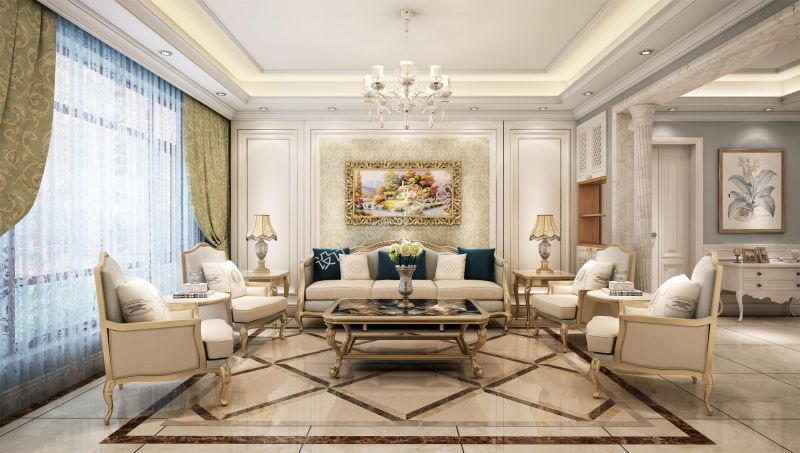 详情纯欧式风格客厅菱形地板砖装修设计图片