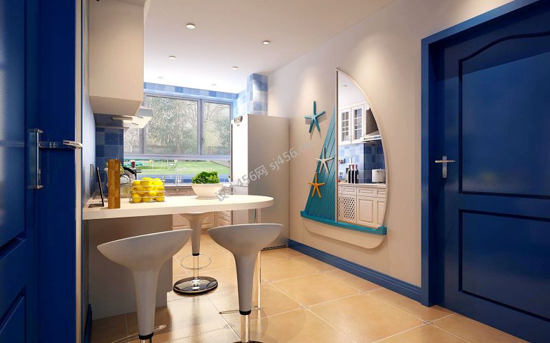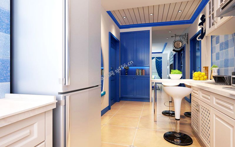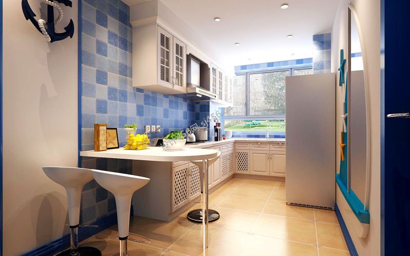 详情地中海风格91平米二居室厨房吧台装修效果图