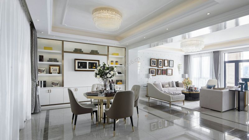 详情140平米三居室港式现代风格餐厅装修设计效果图