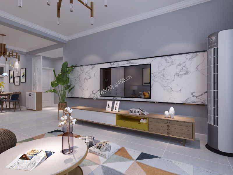 详情107平米二居现代风格电视背景墙装修设计效果图