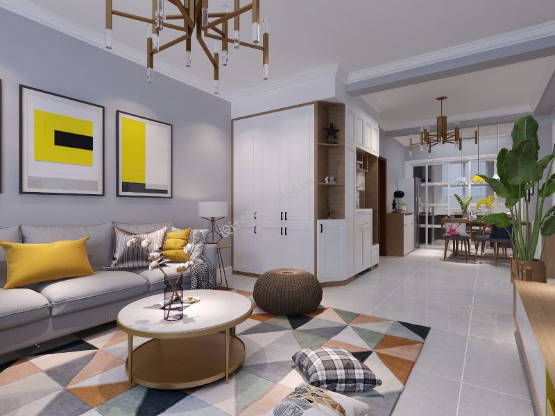 帝博湾107平米二居现代风格客厅吊灯装修设计效果图