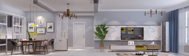 帝博湾107平米二居现代风格客厅餐厅装修设计效果图