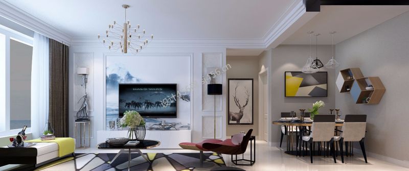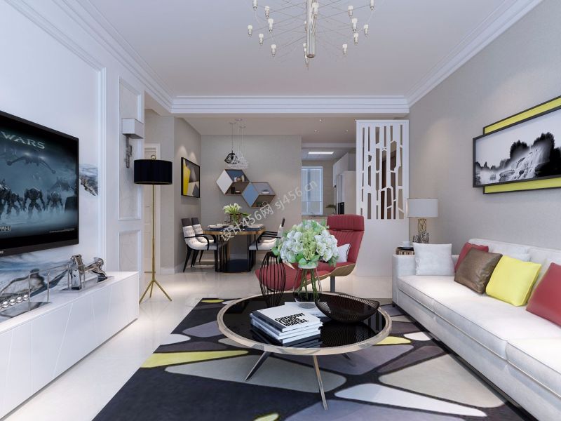 宗御城98平米二居现代客厅吊灯装修设计效果图