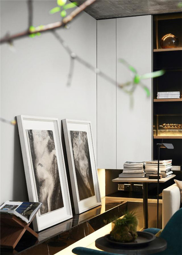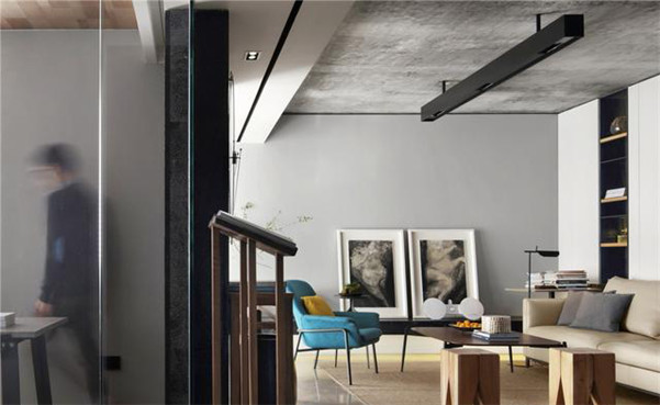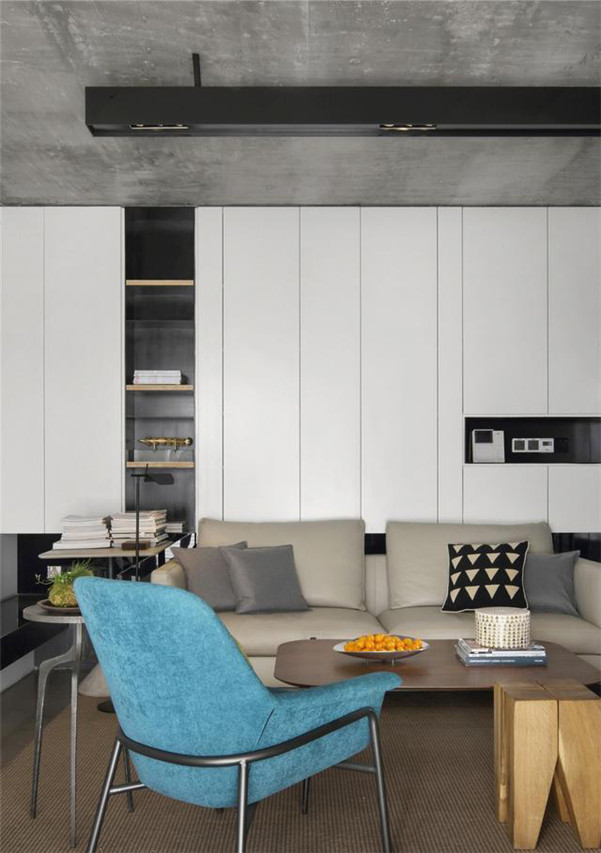 客厅铲掉了原来的腻子,露出混凝土层,搭配黑白质感,有一种质朴简约的自然之美。
