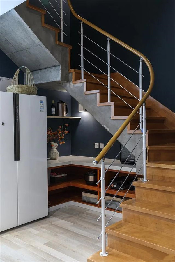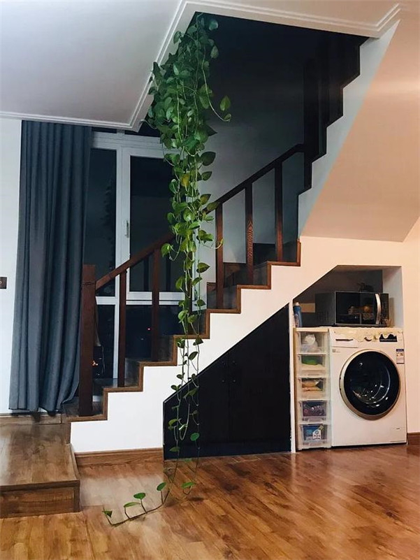 ▼入户就是楼梯的家庭,再也不用担心这里空旷或闲物推挤成山了(家中来朋友看到这里乱乱的,表示无法下脚)。听西瓜的直接把楼梯下侧定制成储物柜,能藏、能囤、还整洁。