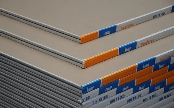3、在选购石膏板时,大家可用尺子测量一下石膏板的尺寸是不是和标准尺寸存在较大的偏差,石膏板直角偏离度是不是出现偏差等等。石膏板的偏差越小,安装效果也越好。在选购石膏板时,大家也可掰一下板材,劣质的石膏板容易被掰碎。