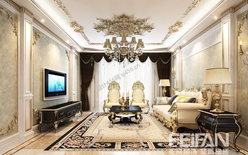 浪漫法式风格138平三居客厅吊顶装饰效果图