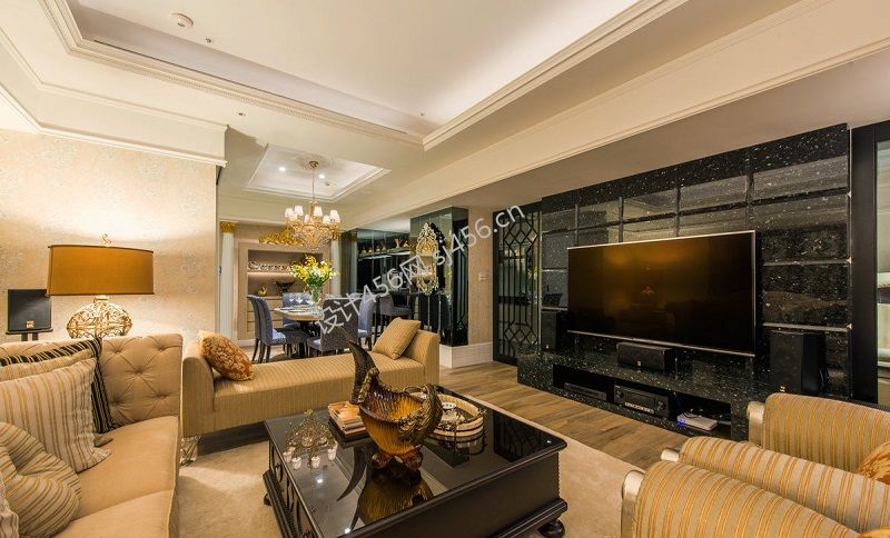 简约欧式风格108平三居餐厅背景墙装修实景图