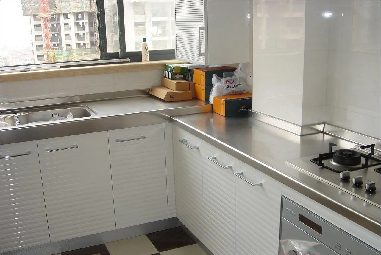 不锈钢台面硬度高,耐高温,使用寿命长,金属色泽漂亮,易于清洗,同时在所有的材质中,不锈钢抗菌性能。
