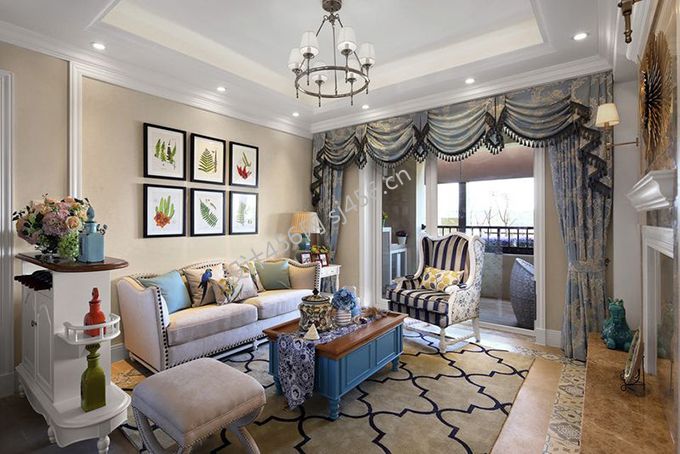 设计理念: 双层的吊顶配上拱形铁柱罩式吊灯突显空间舒适大气,吊坠布与电视机背景墙面互相对应配上旧式木制家具体现室内温馨舒适。 双层的吊顶配上拱形铁柱罩式吊灯突显空间舒适大气,吊坠布与电视机背景墙面互相对应配上旧式木制家具体现室内温馨舒适。
